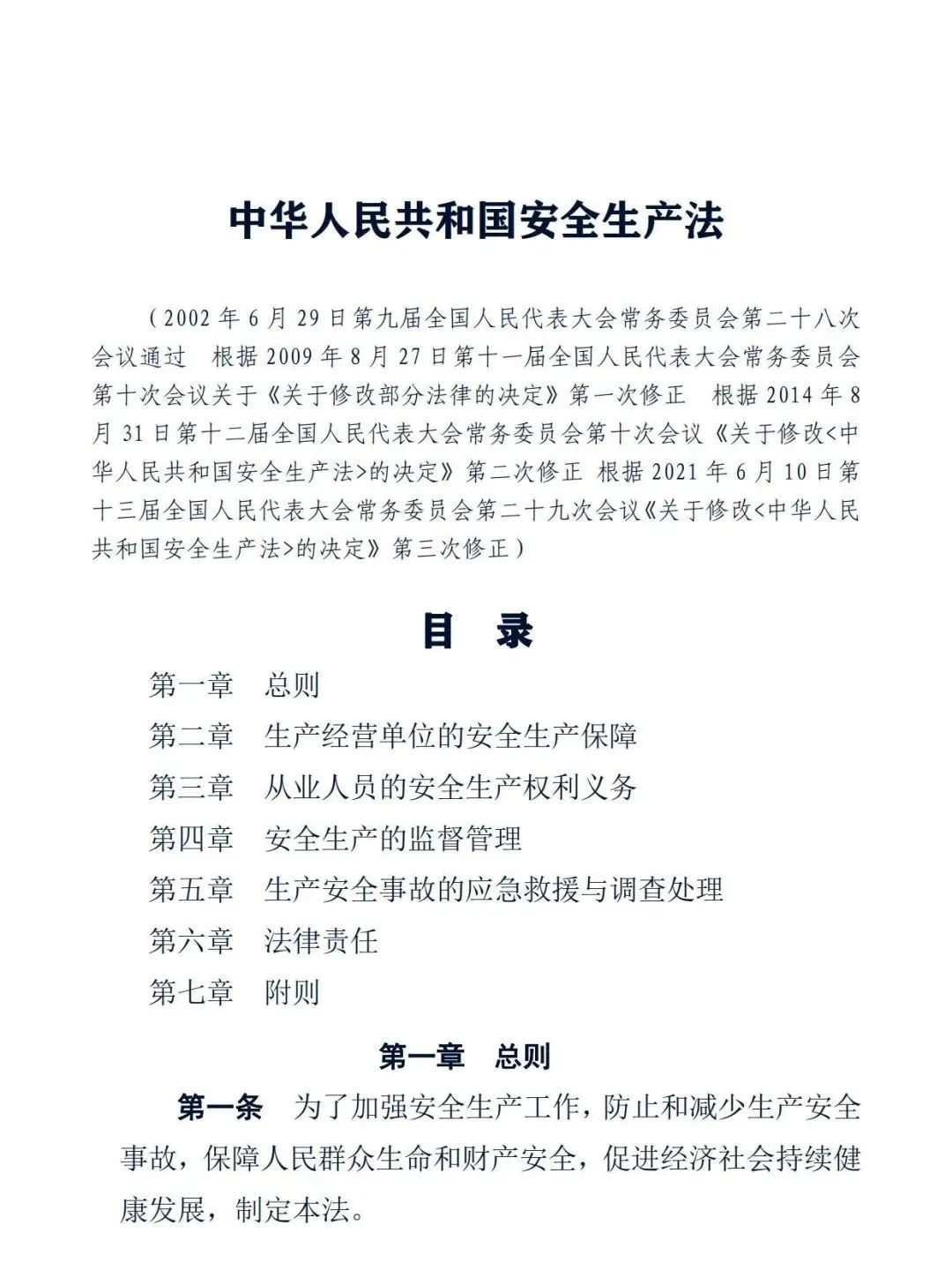正式版《中華人民共和國安全生產(chǎn)法》