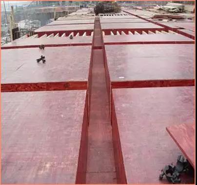 樓板模板:模板支撐體系經(jīng)過嚴(yán)格驗算,并履行審批手續(xù),確保支撐體系的剛度、強(qiáng)度及穩(wěn)定性。嚴(yán)格控制模板起拱高度,跨度大于或等于4m的梁板按2/1000起拱??缍?.4m樓板按1.5cm起拱。