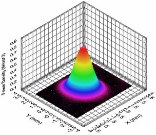 2013年10月,電子所實(shí)現(xiàn)了國內(nèi)首次DPAL銫激光輸出,激光輸出功率394mW,光光效率7.4%,實(shí)驗(yàn)光路如圖2-9所示。對(duì)各項(xiàng)參數(shù)進(jìn)一步優(yōu)化后,所得輸出激光具有極好的光束質(zhì)量,光束功率密度分布如圖2-10所示。激光器光束質(zhì)量M2因子接近1。實(shí)驗(yàn)證明了DPAL在光束質(zhì)量方面的潛力是極大的。