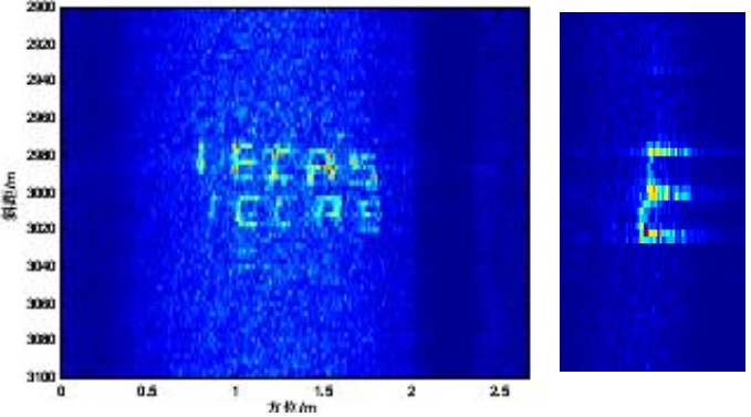 近幾年,我們?cè)诤铣煽讖郊す饫走_(dá)方面也做了很多工作,2016年取得了較好的實(shí)驗(yàn)成果,在國內(nèi)首次實(shí)現(xiàn)了機(jī)載合成孔徑激光雷達(dá)成像,地點(diǎn)位于陜西蒲城內(nèi)府機(jī)場,對(duì)如圖3-1所示的目標(biāo)進(jìn)行成像,結(jié)果如圖3-2所示,分辨率可達(dá)5厘米以下。